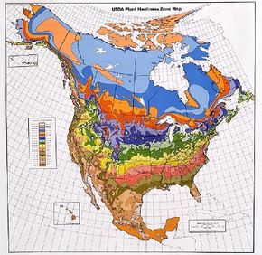 The USDA's hardiness zone map shows the hardiness zones for the United States and Canada, which will help you chose the right plants for your climate. Go to the next page to see the hardiness zone map.