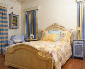 Follow the experts' counsel: Expand a tight room with light colors and filmy curtains, and cozy up a big room with warm tones (such as raspberry or periwinkle) and patterns (such as gingham, toile, or stripes). To make the most of every foot of space, station bigger pieces of furniture parallel or perpendicular to the walls.