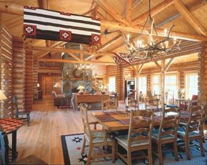 Log beds covered with woolen Native American blankets provide rest for the weary. Above it all hang chandeliers made of entwined antlers or forged iron. Saddles, boots, lariats, and spurs hung on the wall remind modern-day ranchers of their roots -- a lifestyle captured in Remington's bronze sculptures, which also look right at home in the log cabin ranch.