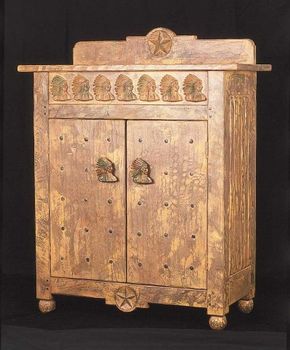 Southwestern-style furnishings may be carved Spanish Colonial wood tables and case pieces that remind us of centuries-old missions. The cruciform is repeated in carvings, recalling the influence of the missionaries. Some of these pieces wear a coat of paint in the colors of the sand, sunset, and sky.