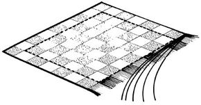 To cut the pieces for the spread, measure down from the pulled-thread line across the fabric and mark the required length; cut each piece carefully, making sure you cut straight across the fabric. For a twin spread, cut the top piece 32 × 102 inches, and two side pieces each 18 × 102 inches. For a full-size spread, cut one piece 44 × 102 inches, and two pieces each 19 × 102 inches. For a king-size spread, cut one piece 44 × 110 inches and two pieces each 30 × 110 inches, if you have 44-or 45-inch wide fabric; for 54- to 60-inch-.wide fabric, cut one piece 54 × 110 inches and two pieces each 27 × 110 inches.