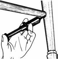 From a piece of soft wood -- pine quarter-round, if you have it -- cut a thin wedge to fit the width and depth of the saw cut in the tenon. The object here is to spread the saw cut slightly with the wedge, thus enlarging the tenon to fit the socket. When you're satisfied that the wedge is the right size, very carefully tap the wedge into the saw cut. When the tenon is slightly enlarged, stop pounding and trim off any excess wood from the wedge with a utility knife or pocketknife. Be careful not to pound the wedge too far; excessive wedging will split the tenon.